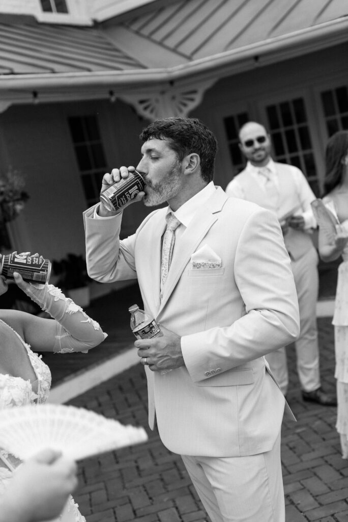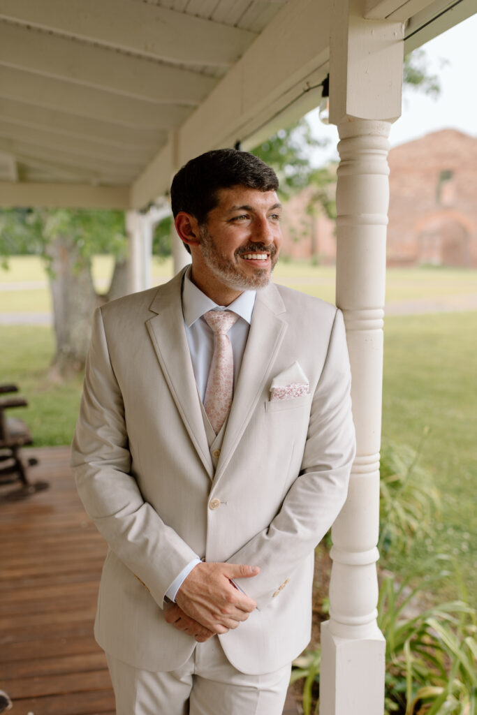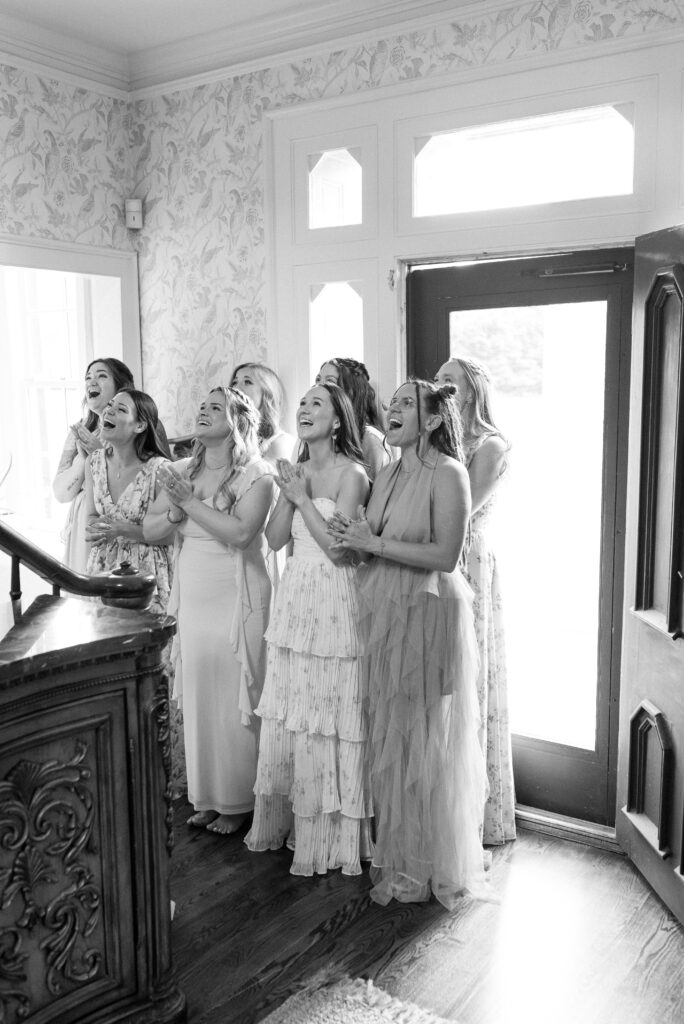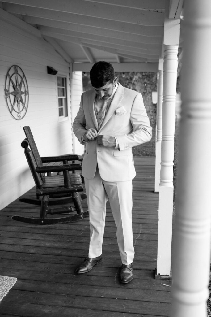 Kayla and Ryan decided to get ready separately with their individual wedding parties. Balcony Downs is perfect for large wedding parties because there is so much room to spread out. When you’re looking for a getting ready space, the aesthetics of the room is key to keep in mind and makes a huge difference in your photographs. You want a space that allows plenty of natural light and clean minimalistic walls to bounce light easily. The getting ready suite at Balcony Downs Venue does all of the above, offering a chic place to start your day with your girls and champagne, of course. There is a separate house for the groomsmen to get ready in as well, that is across from the main house so there won’t be any accidental sneak peeks before the ceremony!