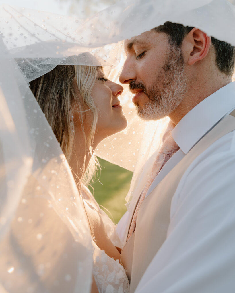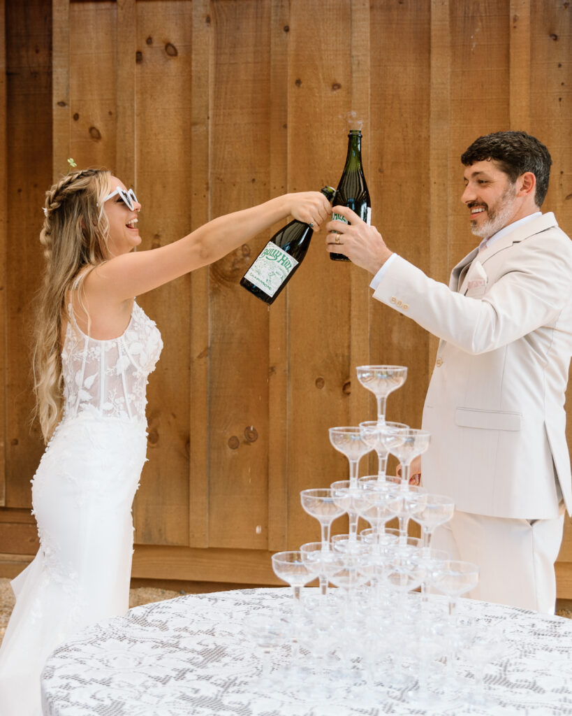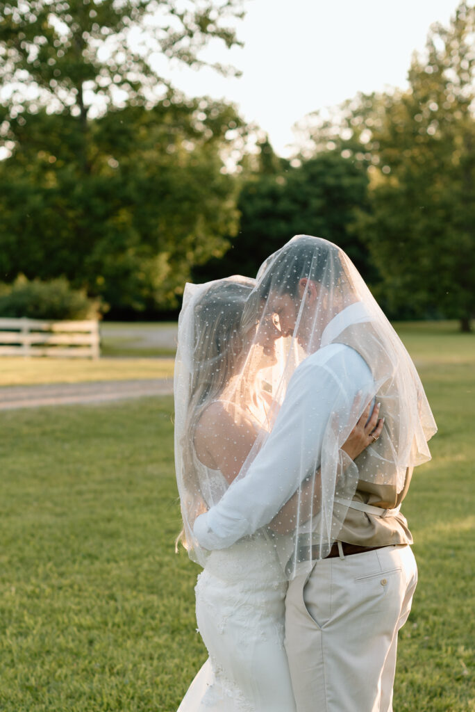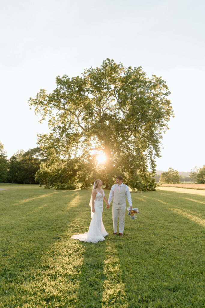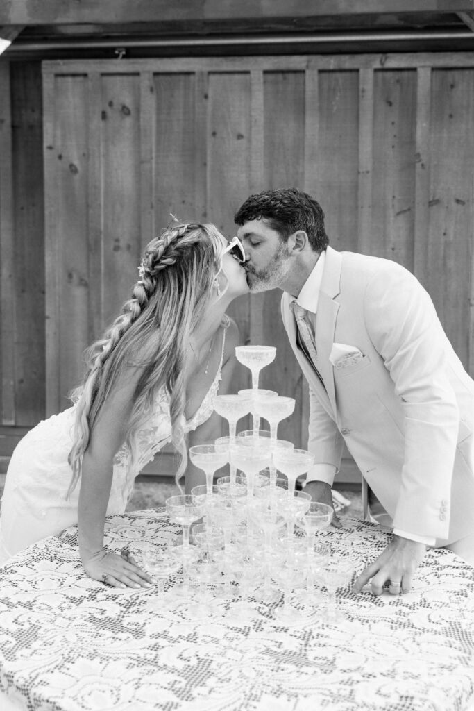 Kayla and Ryan really wanted time to mingle with their guests and have time to be present with those that mean the most to them during the cocktail hour. It was truly garden party vibes with outdoor games and a champagne tower to top it off. After spending some time hanging out, we walked around the property of Balcony Downs Venue and took some newly married portraits before the sun went down.