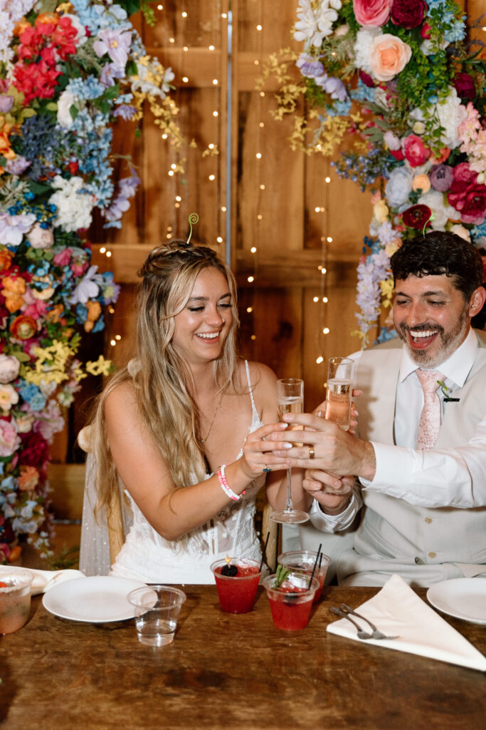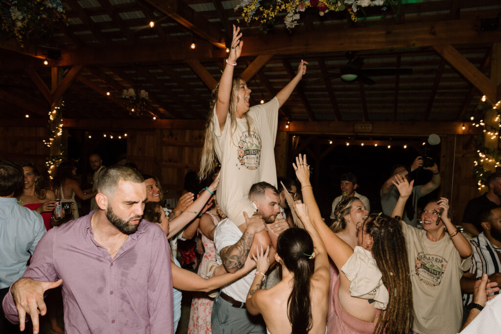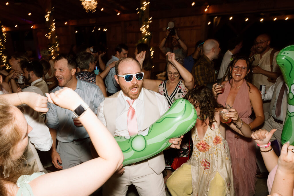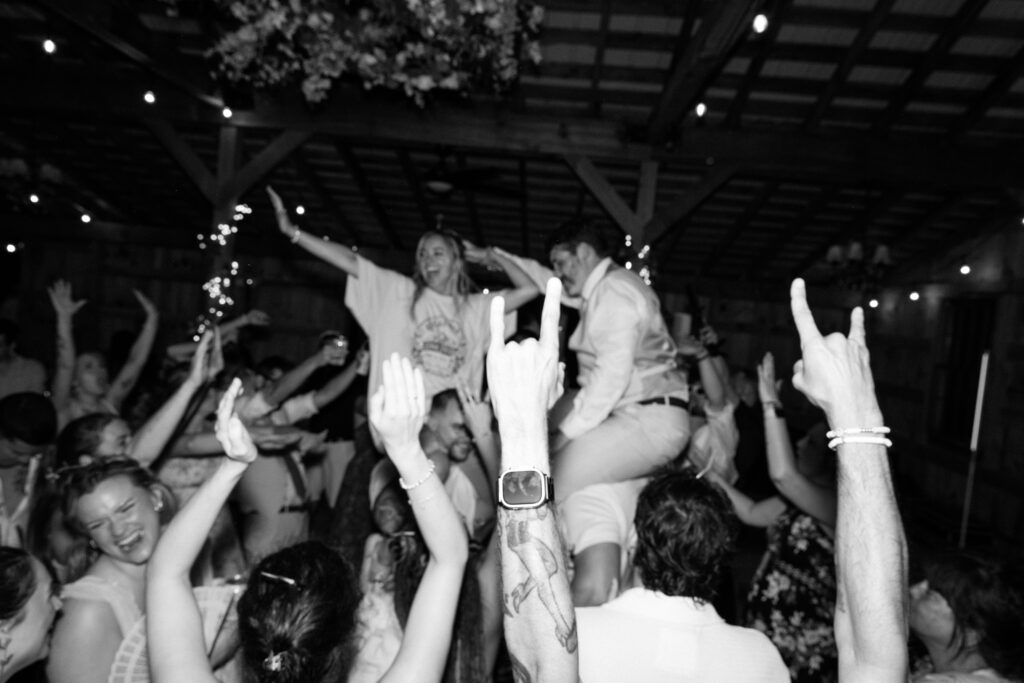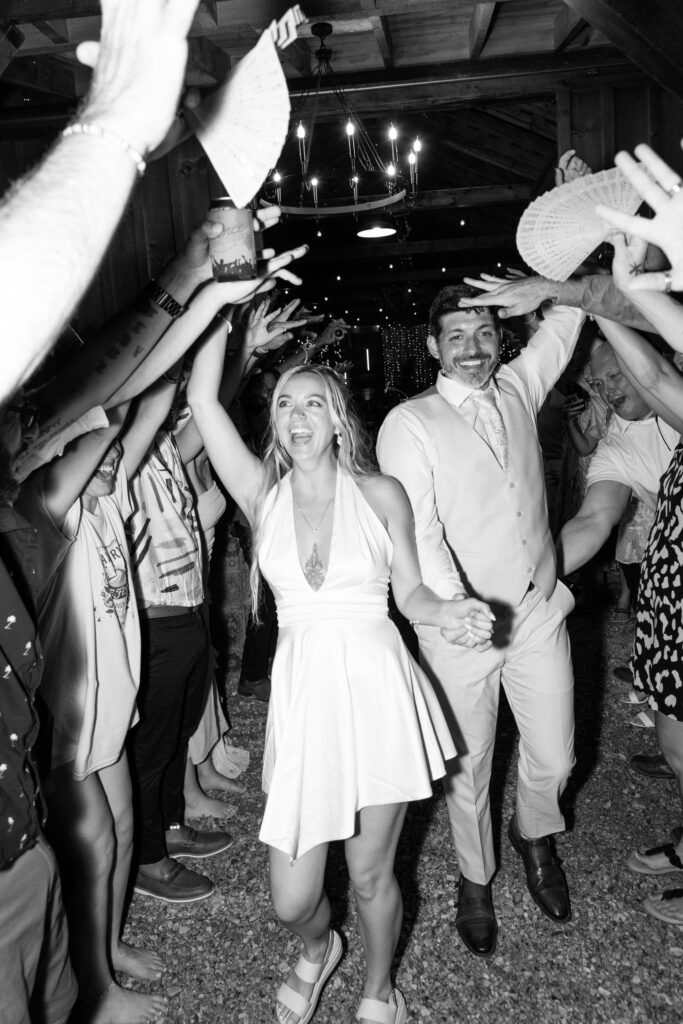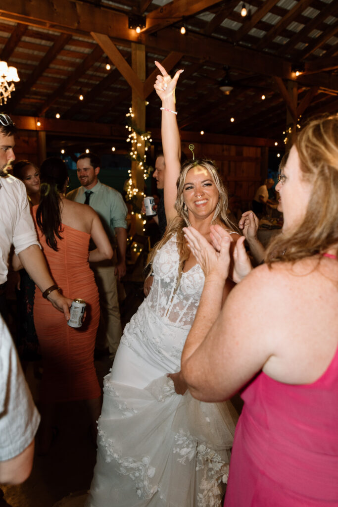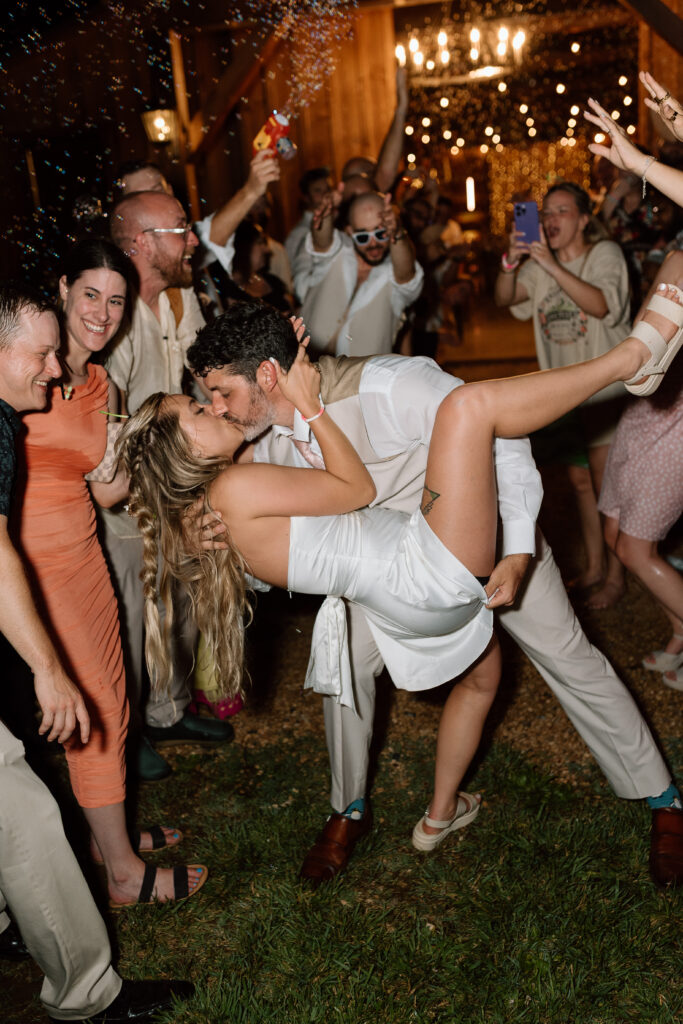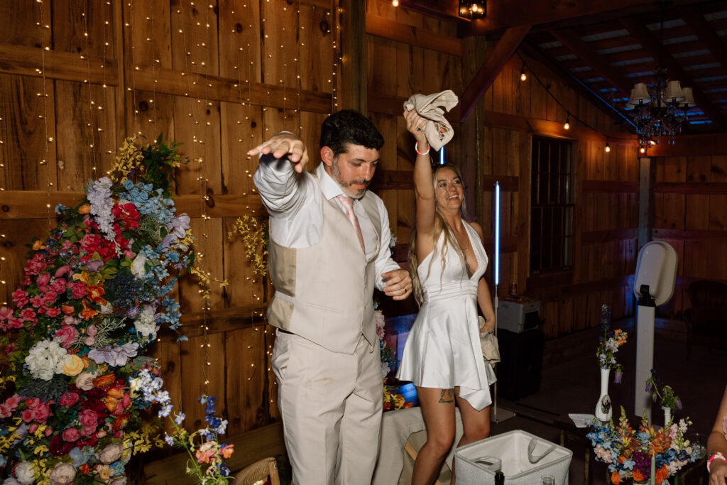 If I can give you one tip about your reception, it would be to let go and embrace every second of it. The dance floor will stay hopping as long as you’re on it and dancing the night away! Those fun, candid photos come from you just enjoying the time with your friends and not worrying about anything else. Kayla and Ryan really went all out for their reception, it was such a blast and the dance floor was never empty. From a cold sparkler entrance to a t-shirt toss, these two knew how to bring the party. Kayla also changed into a reception dress that fit so well into their party vibe aesthetic.