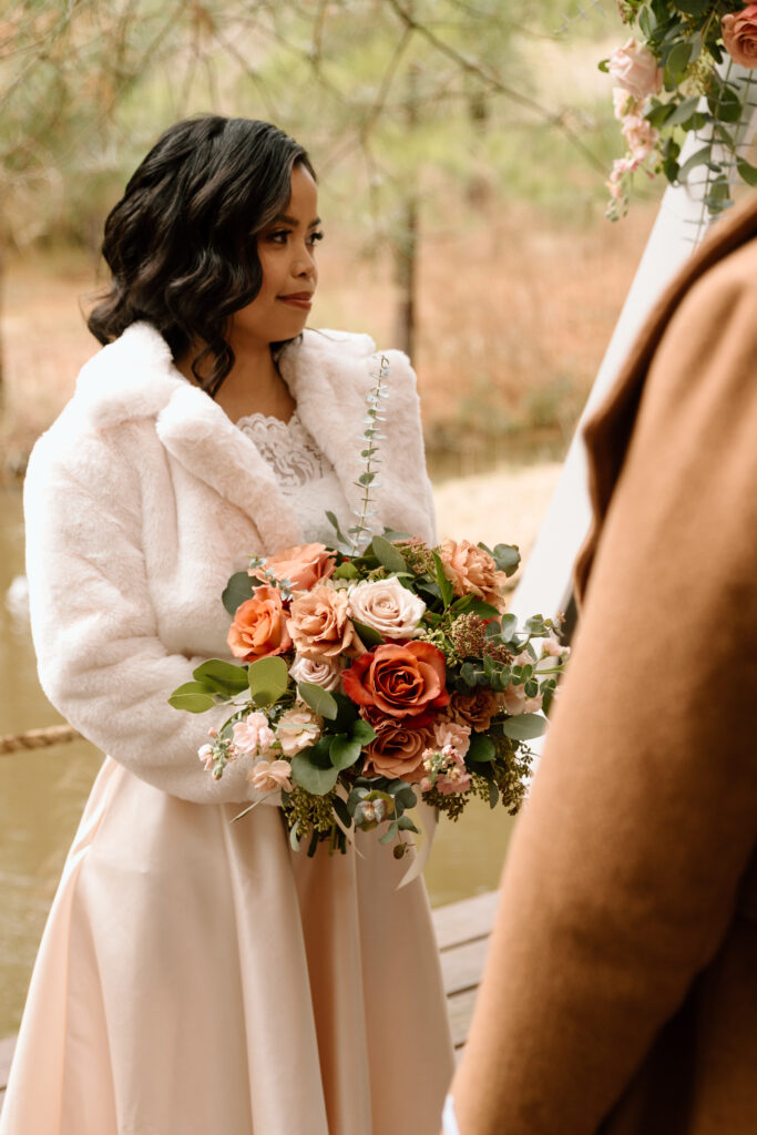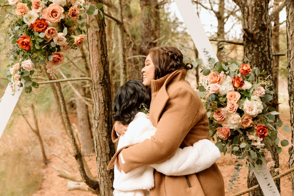 Gail and Kris said their vows about 2 hours before sunset to allow plenty of time to celebrate after. Their elopement was in January but the weather was perfect and not too cold. The overcast skies created a moody ambience but allowed for perfect gentle lighting. The wait was finally over, after years waiting for this moment, they said their I do’s and they both broke out in a dance right after. It was the purest moment of overwhelming love and joy!