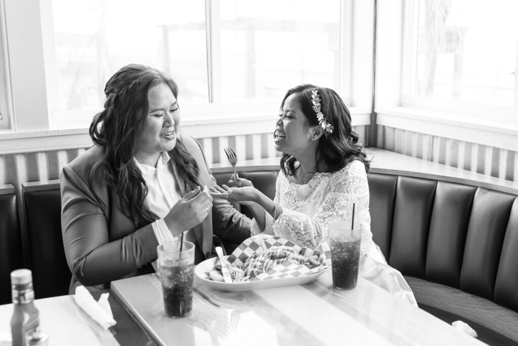 After they shared some cake, we ventured down to the Shanty to enjoy some Coke and fries. Talk about the perfect Cape Charles elopement dinner! The fog was heavy and created such a mystical vibe for photos on the pier.